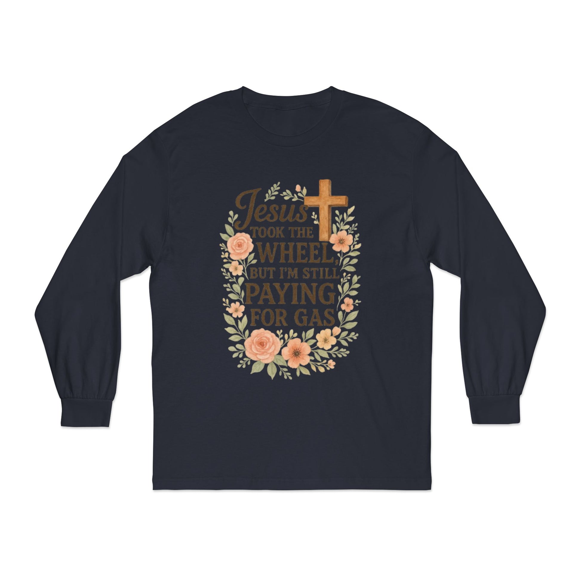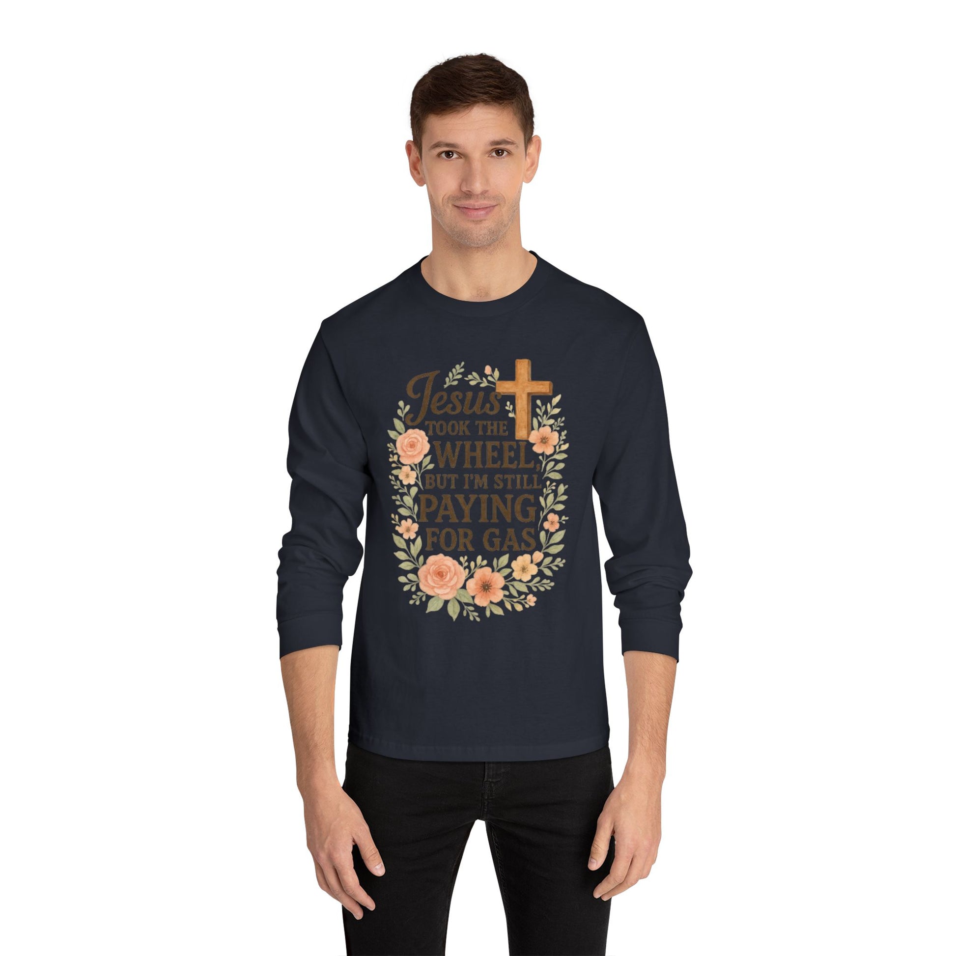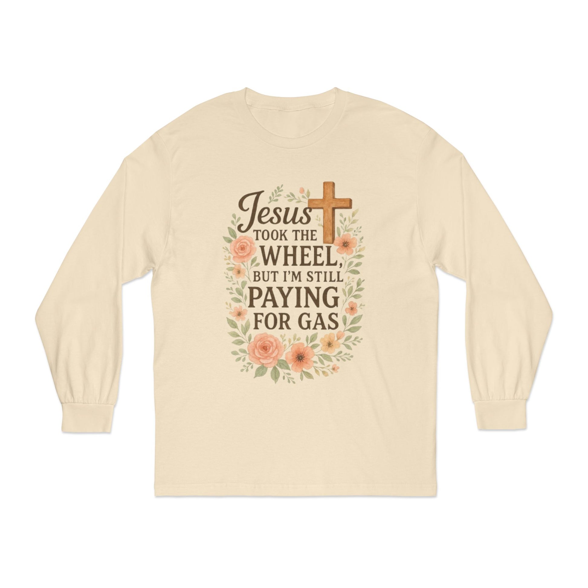 Faith-Inspired Long Sleeve Tee: Jesus Took the Wheel, Casual Wear, Gift for Believers, Religious Apparel, Cozy Everyday Top