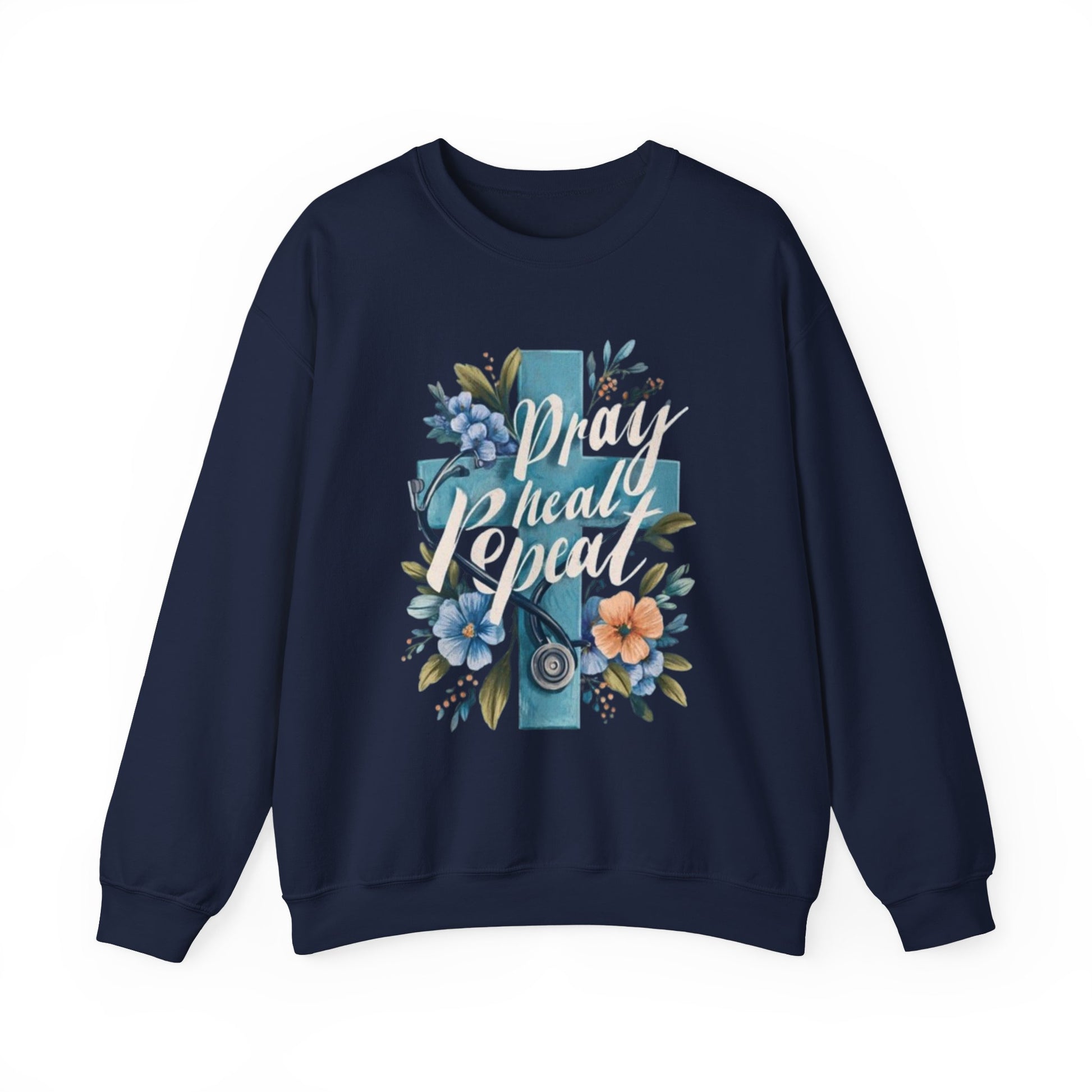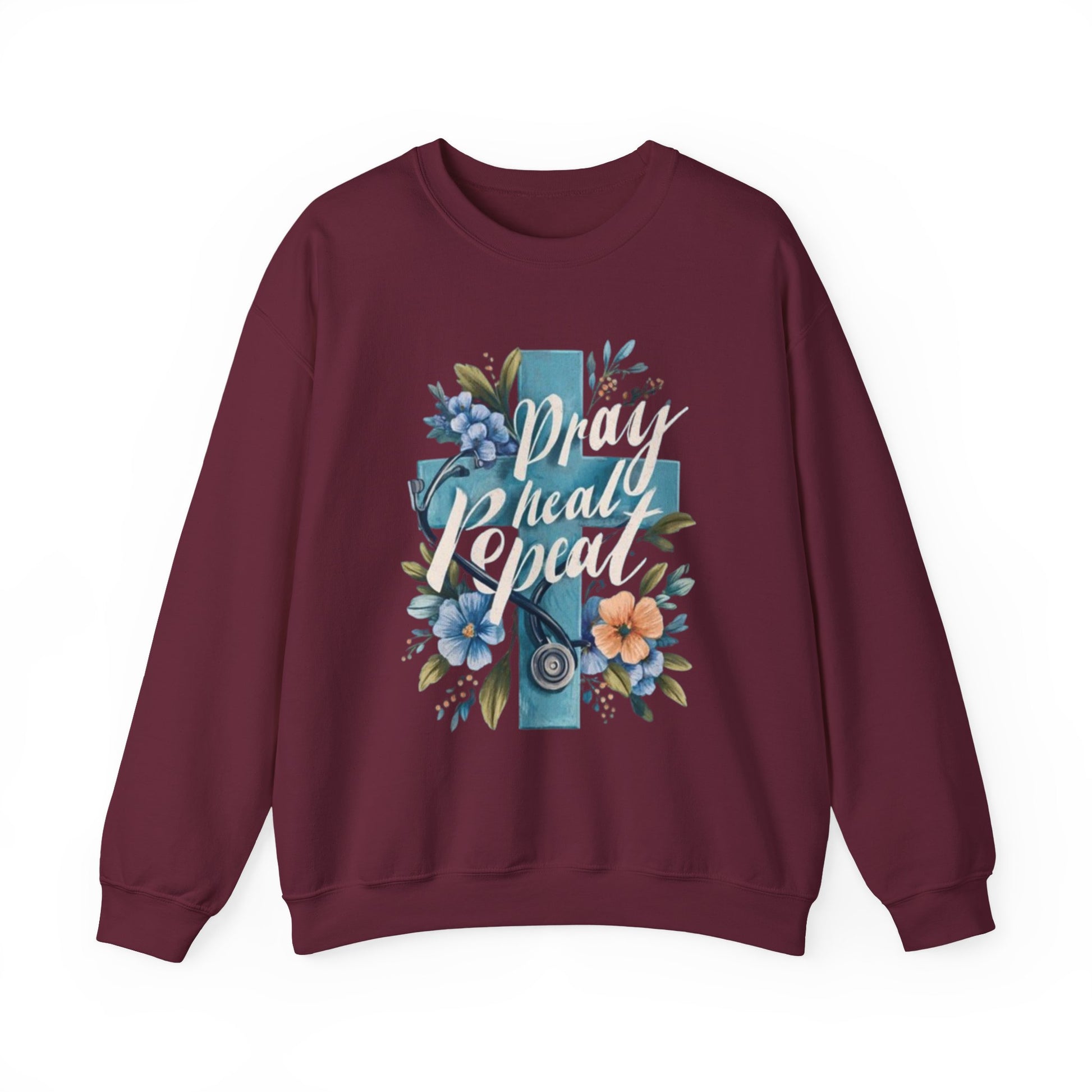Floral Christian Nurse Sweatshirt - Pray Heal Repeat, Cozy Casual Wear, Gift for Spiritual Friends, Faith Apparel, Everyday Comfort