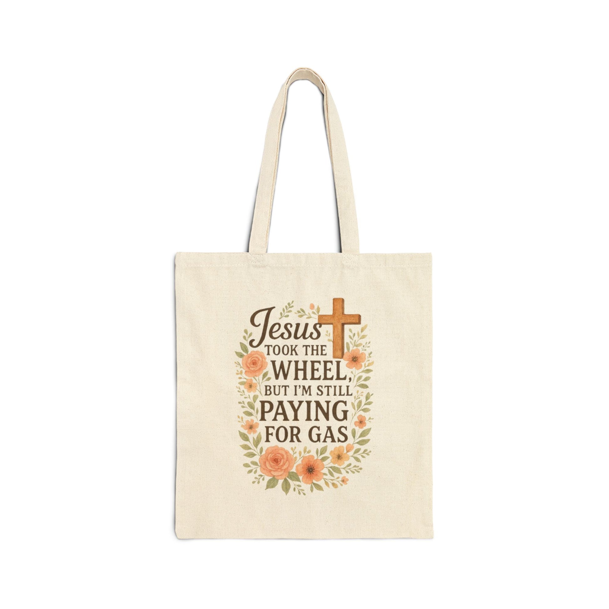 Jesus Took the Wheel Tote Bag, Cute Christian Gift, Floral Quote Bag, Everyday Canvas Shopper, Faith-Based Tote, Religious Carryall